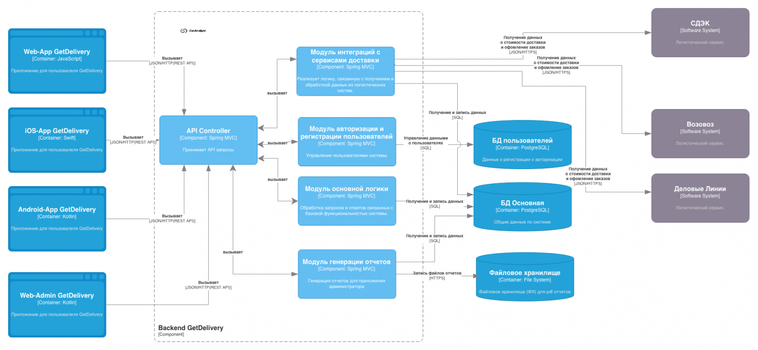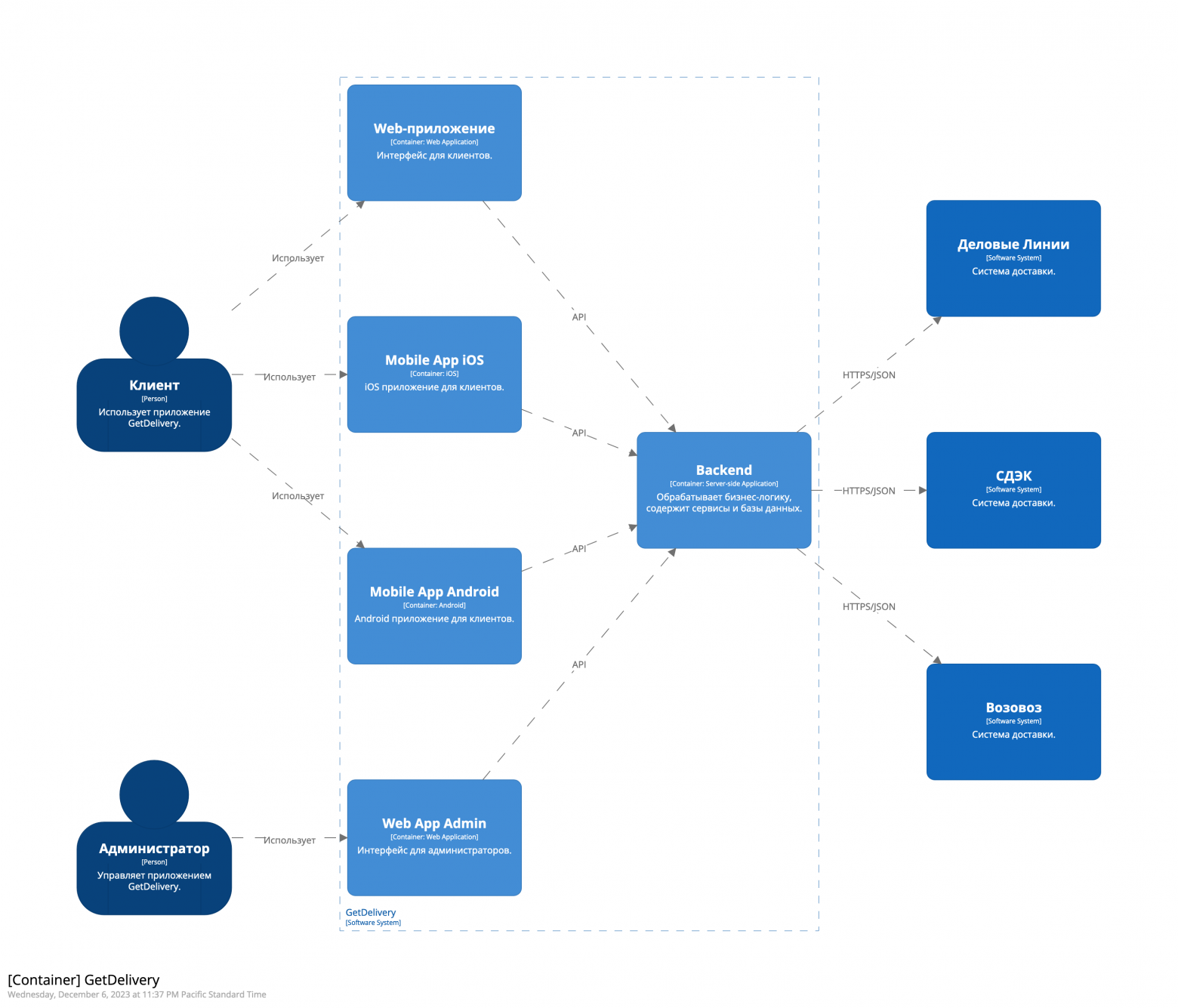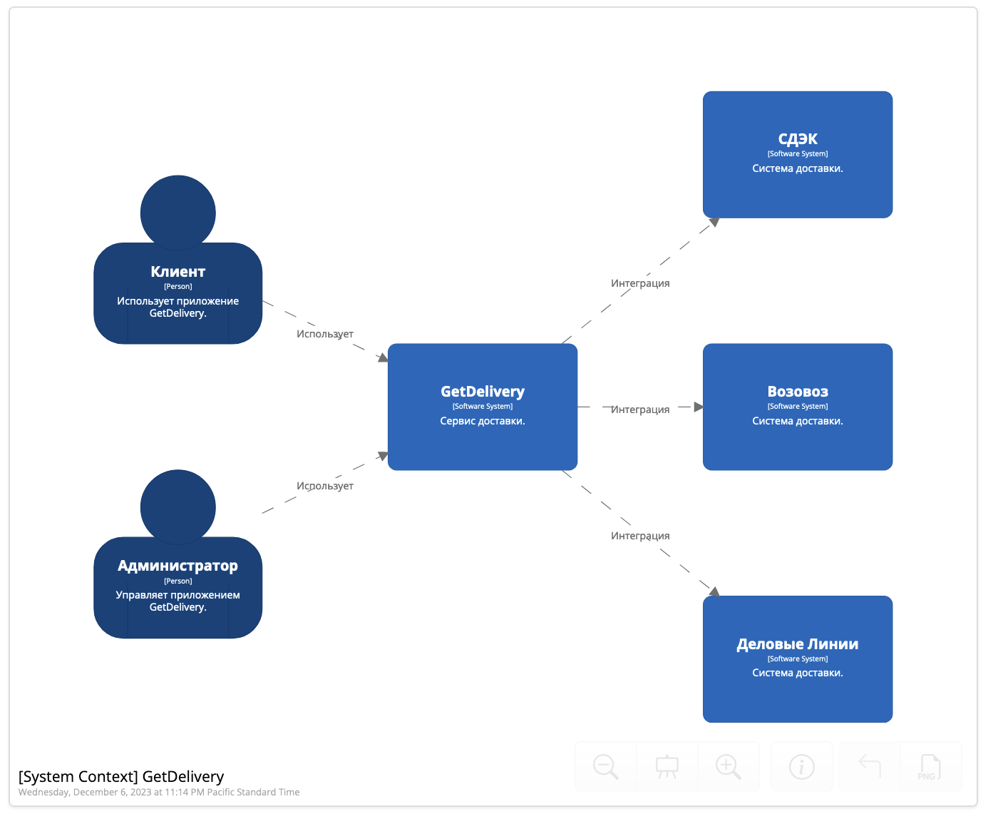 | C1 | Context (Контекст) | Система в окружении внешних систем и пользователей | Заказчики, менеджмент |